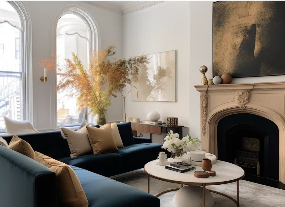 Gam trung tính nhẹ nhàng làm nền: trắng ngà, be, ghi sáng. Điểm nhấn với vàng champagne, xanh olive hoặc đen nhấn nhá – tạo sự cân bằng giữa cổ điển và hiện đại.