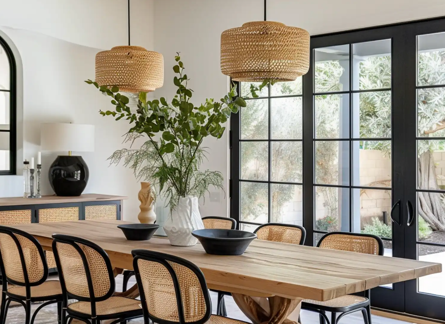 Ghế mây đan, sofa linen sáng màu, tranh treo lấy cảm hứng từ thiên nhiên, hay thảm cói tự nhiên… tất cả hòa quyện để tạo nên một không gian sống phóng khoáng, cởi mở và gần gũi.